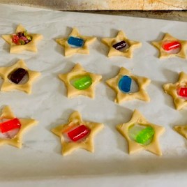 - Put a Jolly Rancher (or any other hard candy you’d like) in the center of each cookie. Put the cookies in the oven for 11 to 12 minutes or until the edges are golden brown.