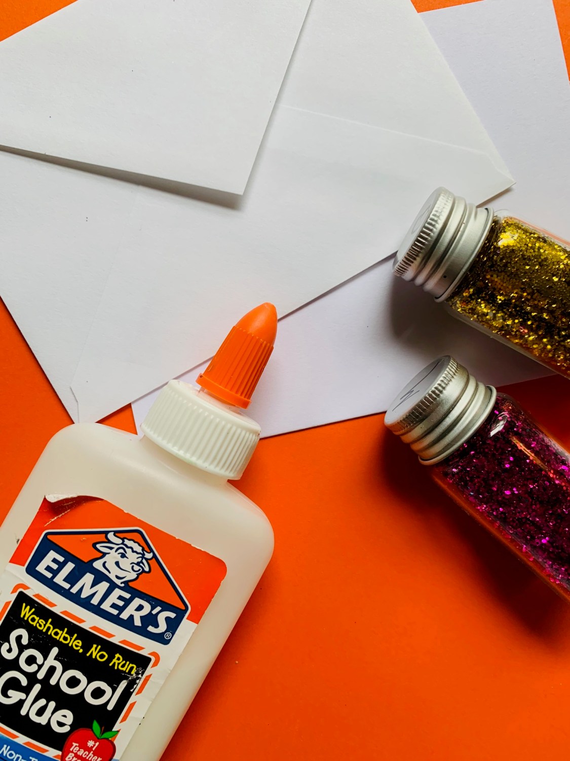 - Glue in the areas where you want there to be glitter (as seen in the first image)