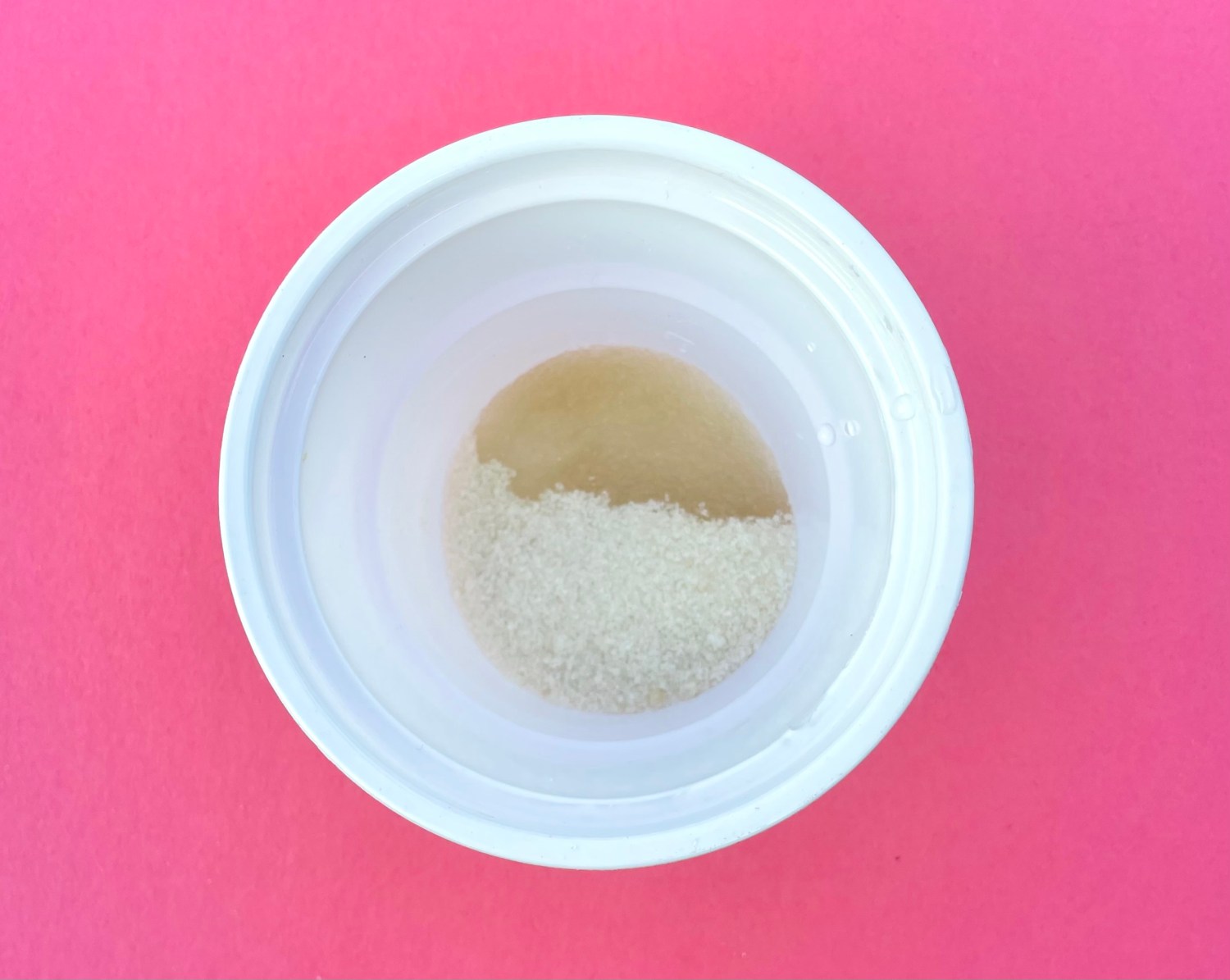 This DIY lip scrub is one of the easiest crafts to follow! It’s also very customizable- you can make it any color, add in any extra ingredients, and different scents to make it your own! You know your skin best, so if there are any ingredients you are sensitive to, you can swap them with other ingredients. All the materials you need for this sweet lip scrub are also common things you can find in your pantry!
