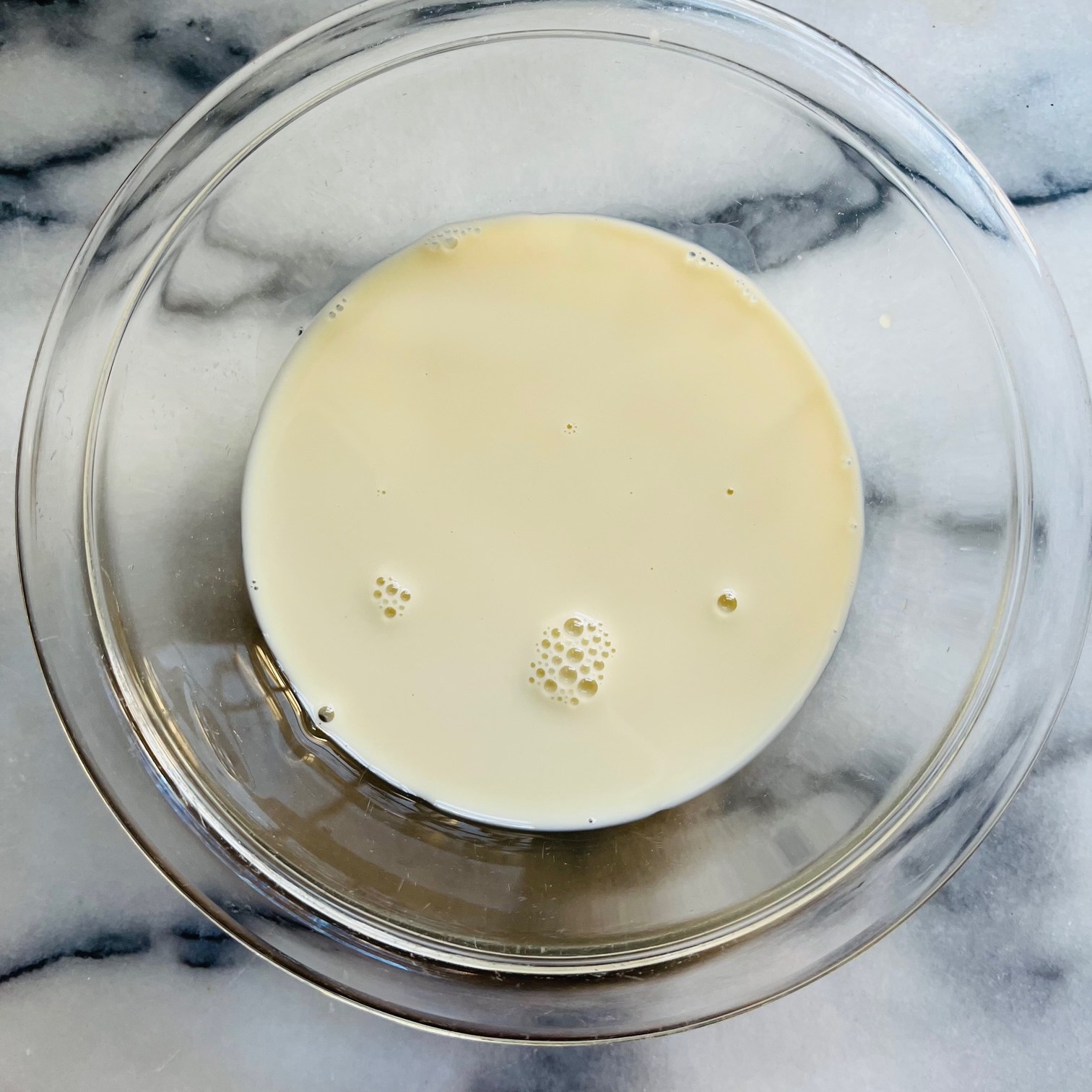 - Combine oat milk and vanilla extract in a medium, microwave-safe bowl.