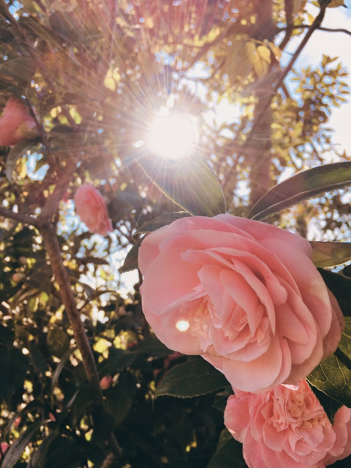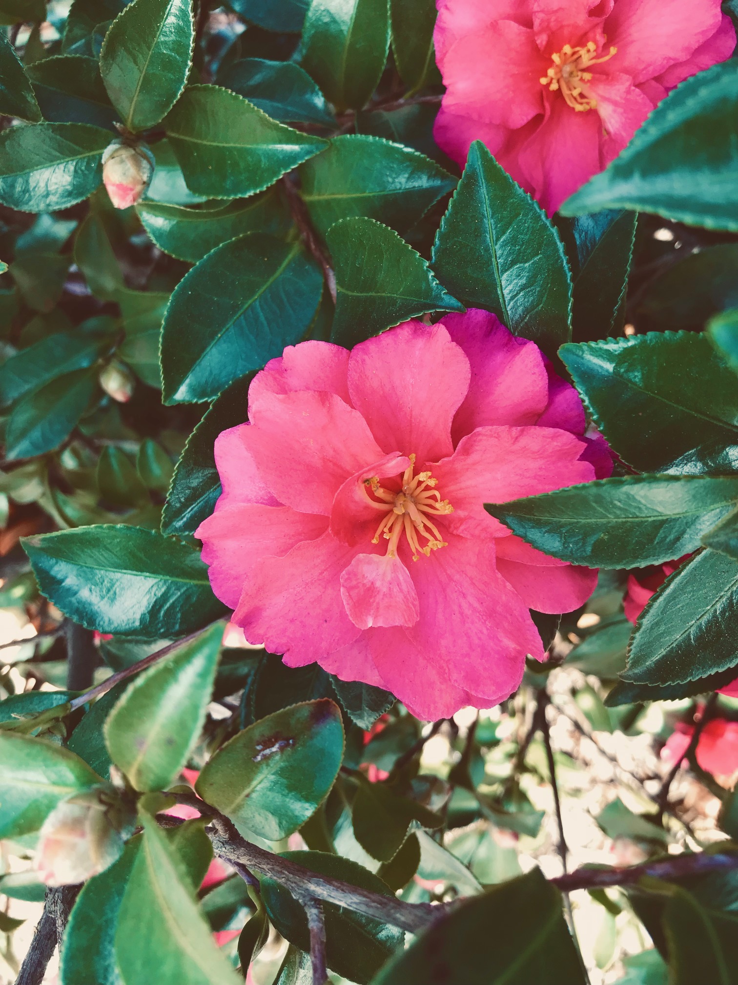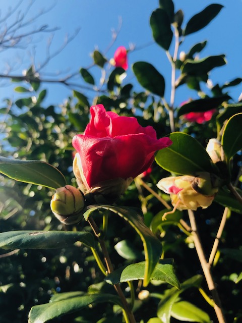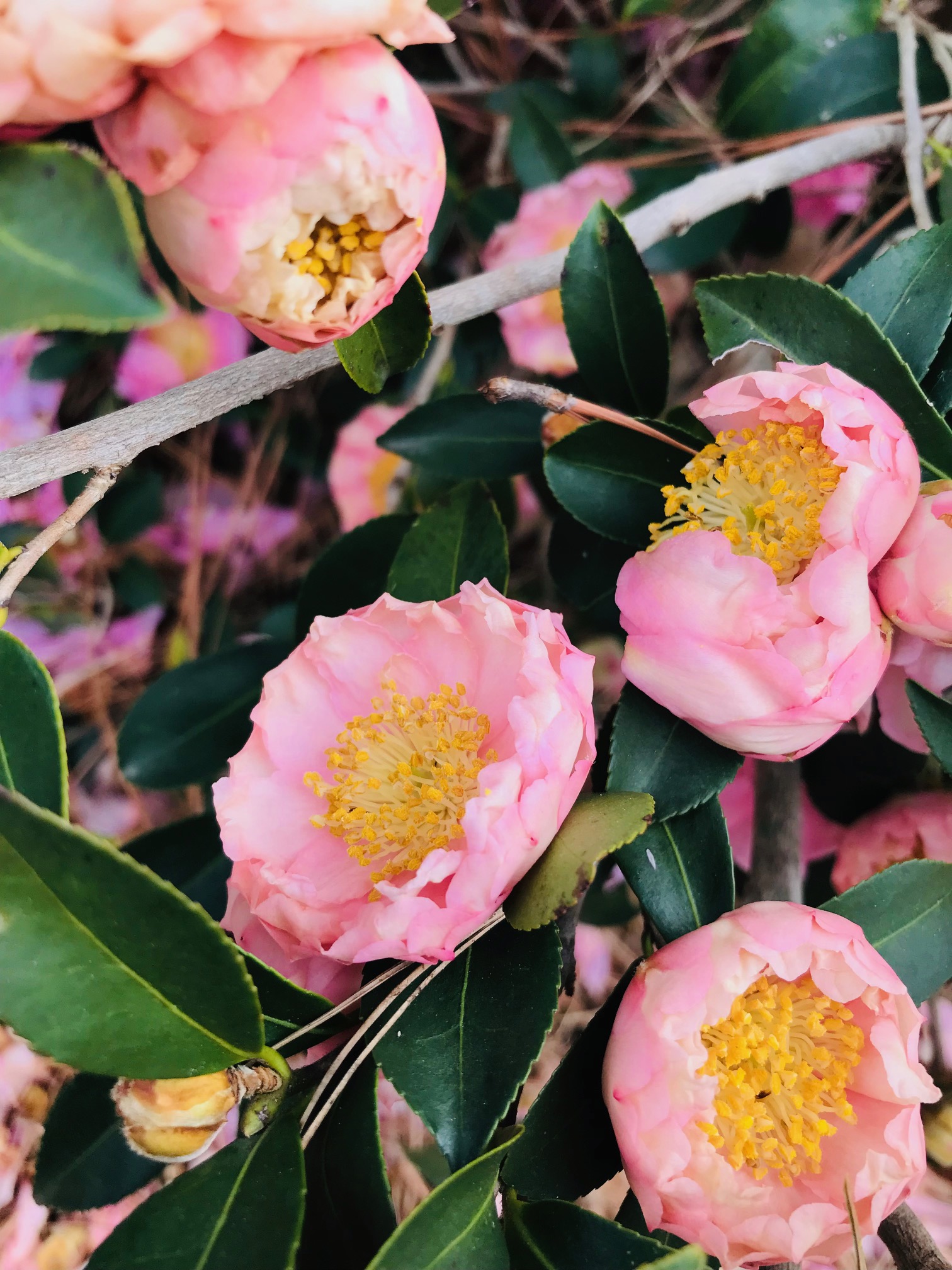 Above: Camellia flowers blooming in the winter See bonus section for more camellias.