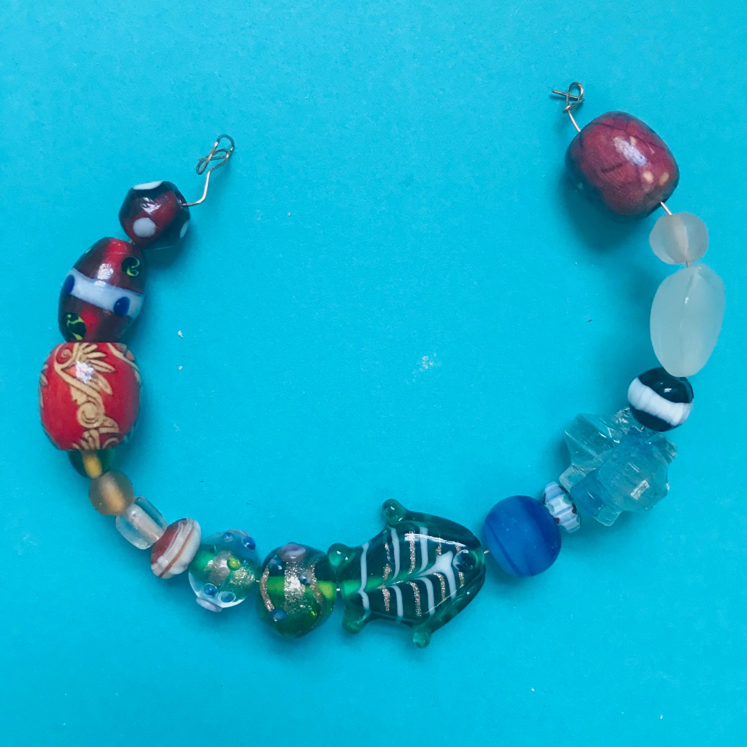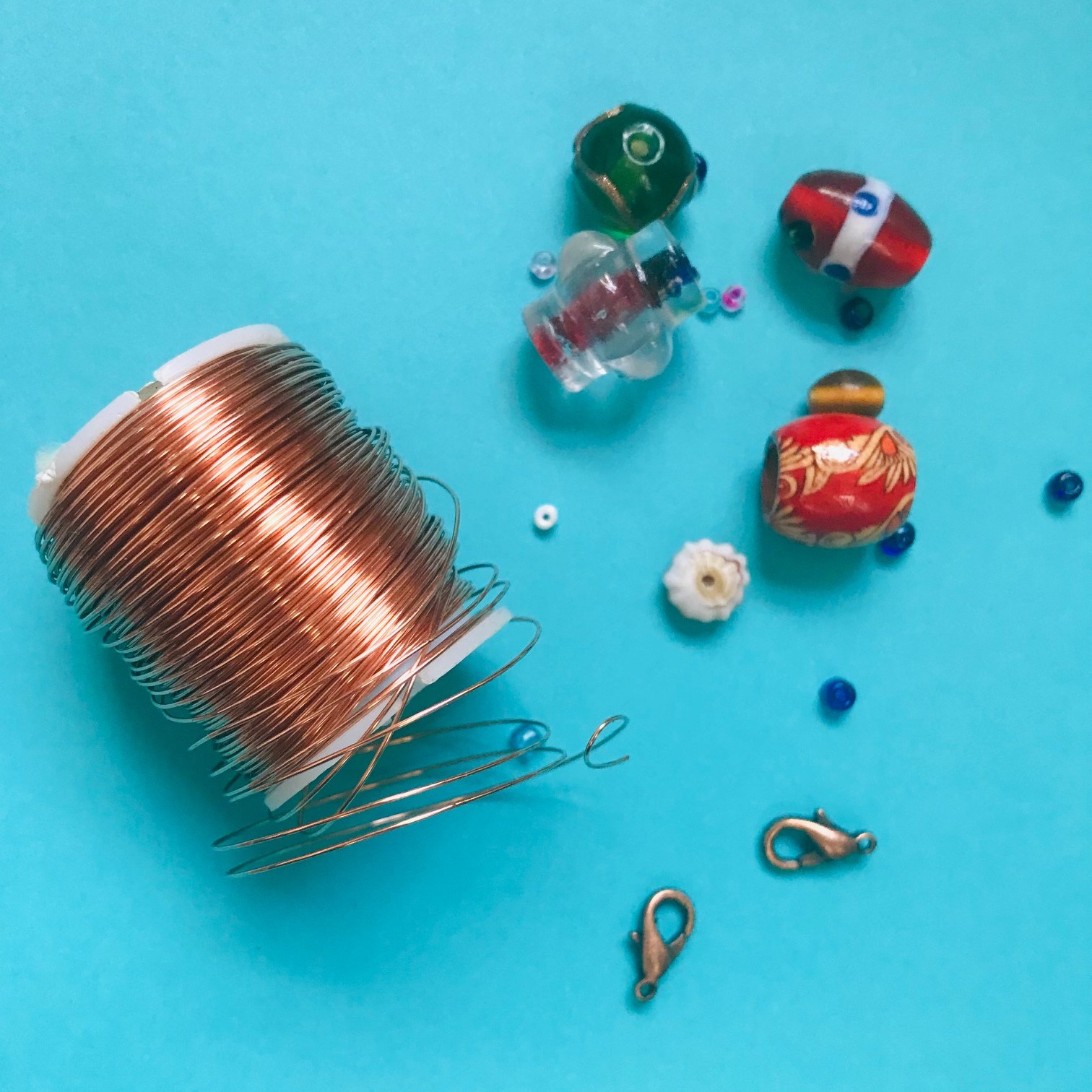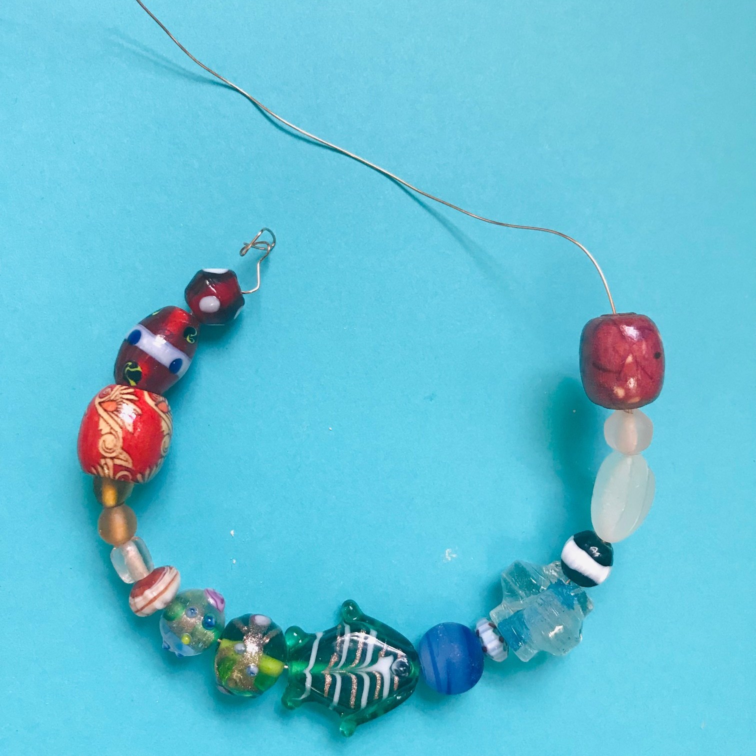 - Once all your beads are on the wire, cut off any excess wire, leaving some to attach the clasp to.