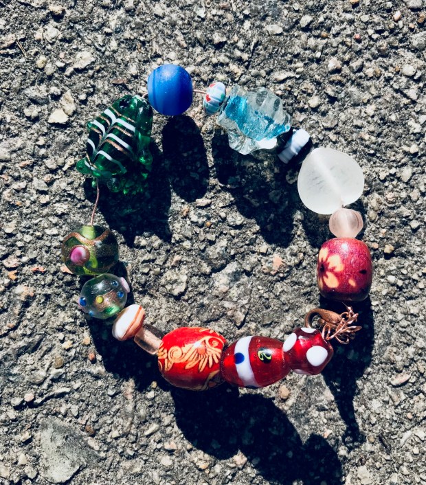 - Begin placing your beads on the wire. (I arranged mine in a rainbow pattern)