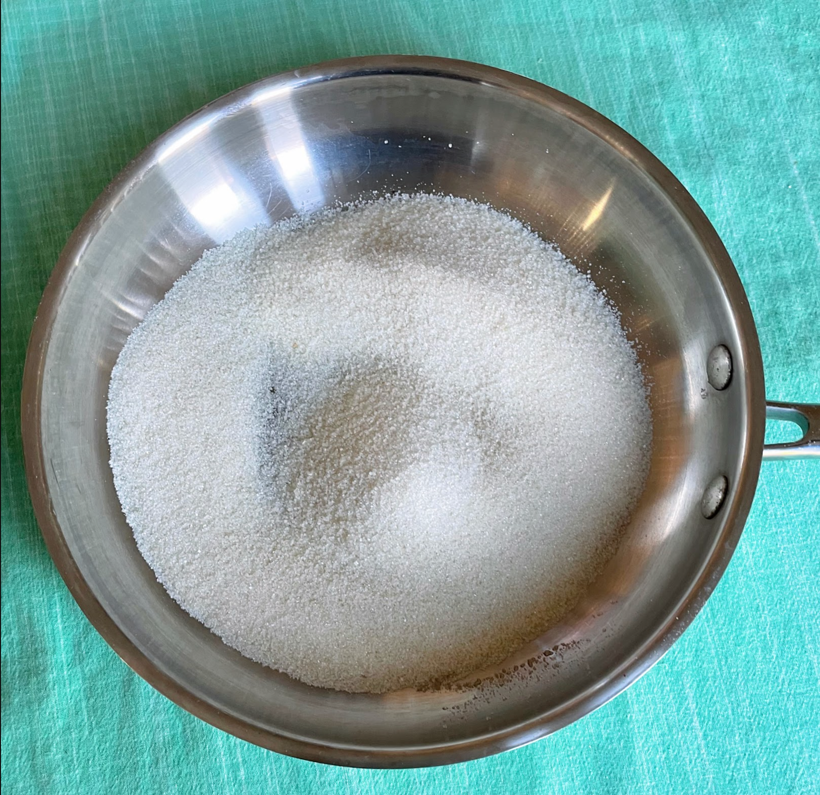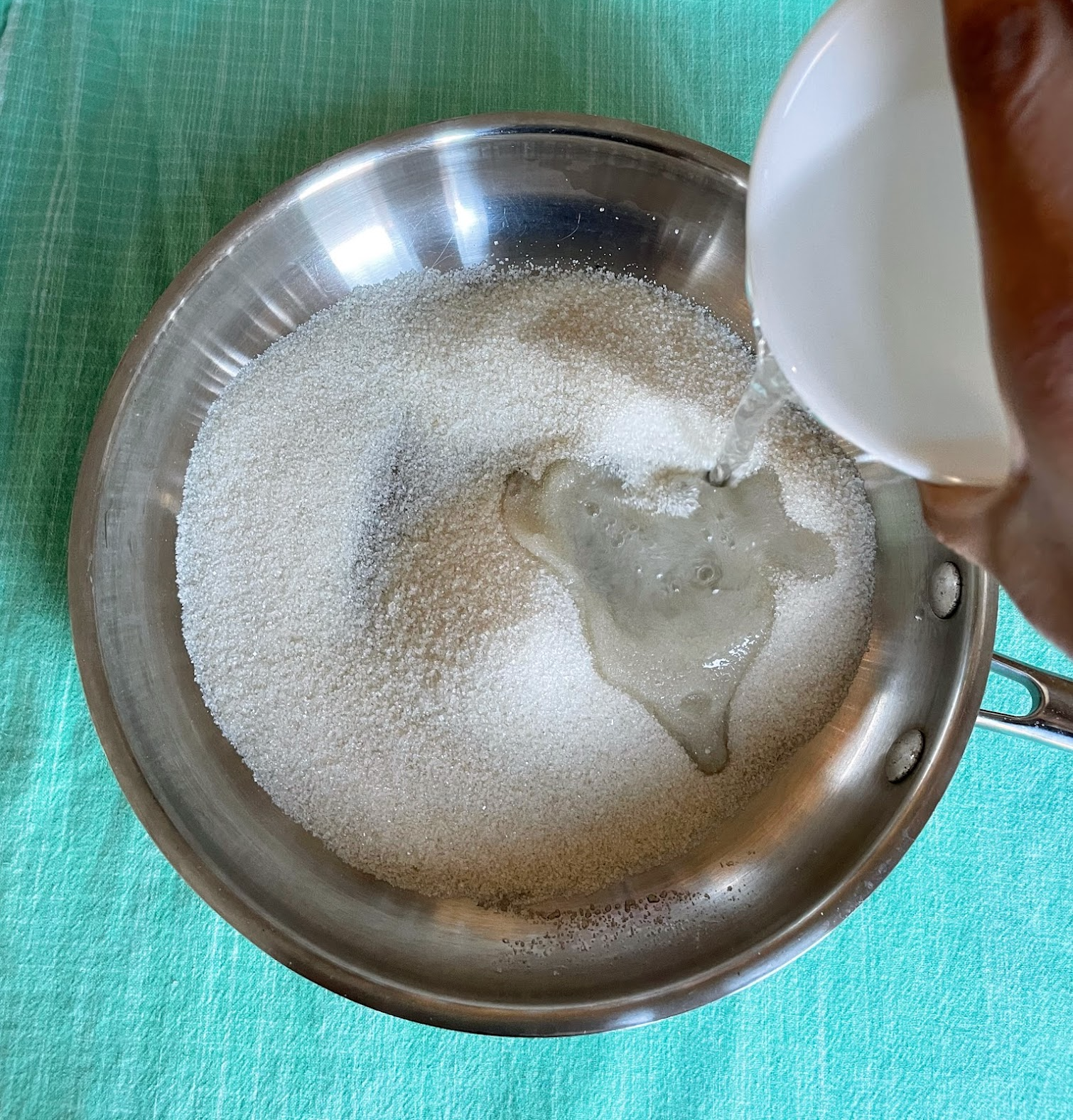 - Add your sugar and water to a pan and put it over medium to high heat. Wait for your mixture to boil and squeeze in some lemon juice to prevent crystalization.