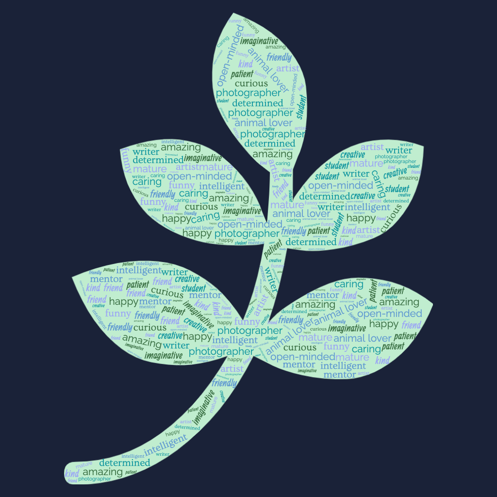Word clouds are a great way to express meaning in the form of multiple words and short phrases. I used wordclouds.com to create a personalized word cloud that described my personality and passions. This is a great way to remind yourself of your worth and who you are as a person.