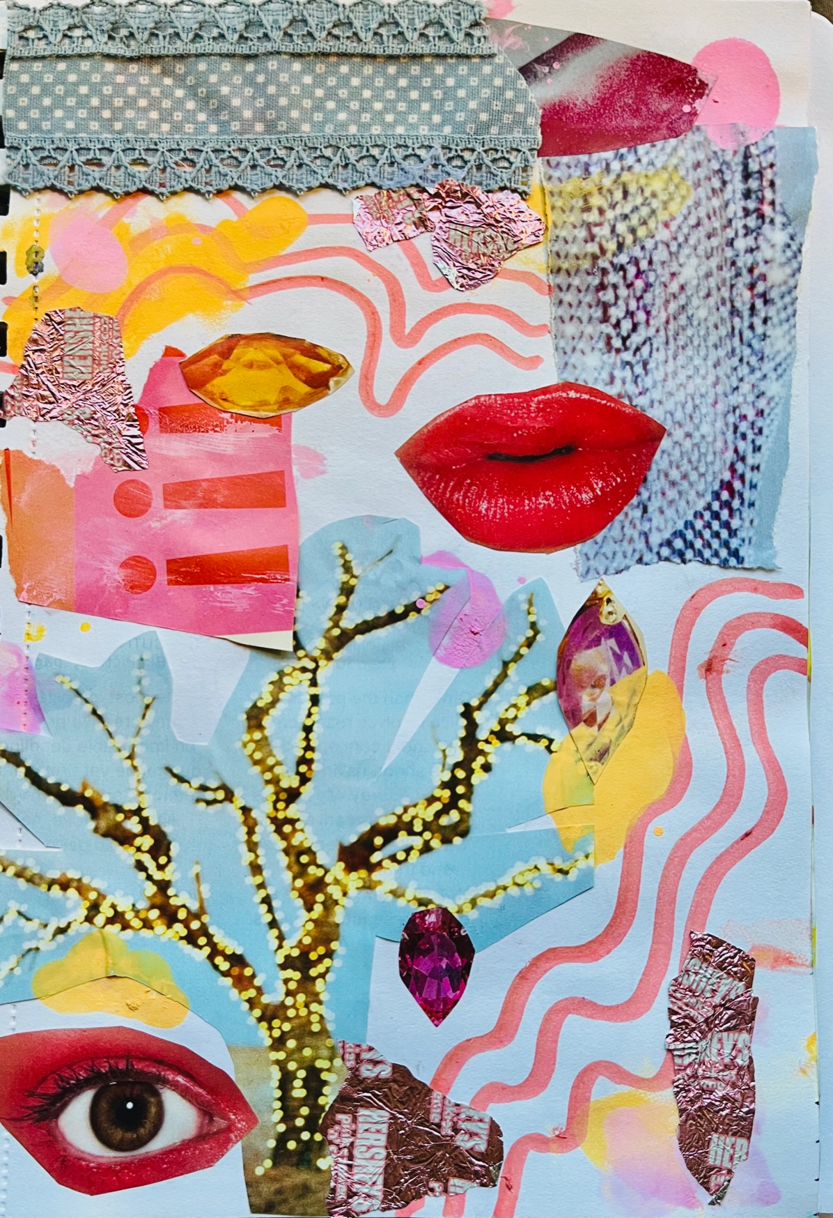 Collages are an easy and creative way to combine various types of media. Most of the collages below were pieces cut out of magazines but I also used pastels, paints, and ink to create a vibrant and colorful look that stands out.